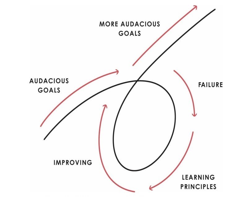 Dakle, svaki Odvažni Cilj koji želimo da postignemo, imaće kao neizostavni deo procesa Neuspeh, koji će nas povući na dole. Da bi se podigli, potrebno je da Učimo Principe koji će nam pomoći da krenemo uzlaznom putanjom. Naučeno nas vodi ka Poboljšanju, sa kojim onda polako krećemo uzlaznom putanjom. Nakon toga ponovo se vraćamo na putanju napretka i postavljamo novi Odvažni Cilj, koji zatim ceo ovaj ciklus započinje ponovo.